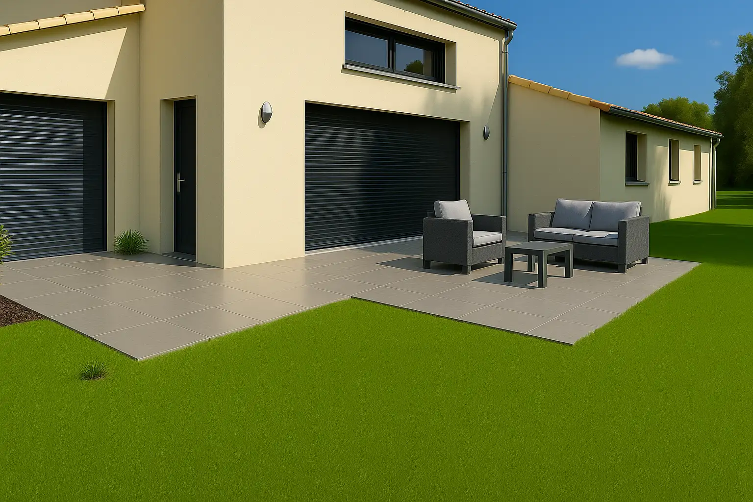 - Terrasses en dalles ou pavés : pour un rendu plus naturel et esthétique