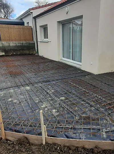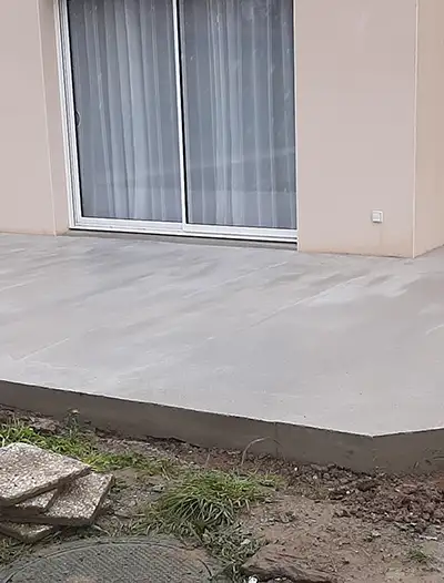 - Terrasses en béton : solides et personnalisables avec différents types de finitions (lissé, balayé, imprimé)